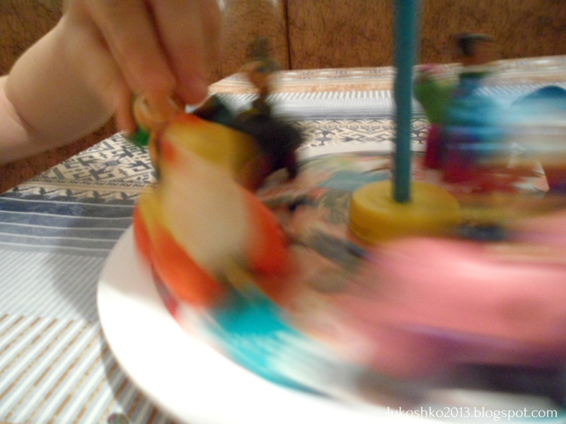 А это карусель в действии! Сама она конечно не крутится, это я за карандаш кручу. Но идея сделать карусель рабочей не покидала меня до тех пор, пока я не взглянула на часы)))