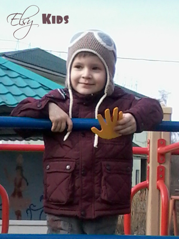 Деме нужна была шапка! Связала! Осенью. Но на тот момент резко похолодало и мы оделись сразу в зимний комплект. Он нам еще по размеру) А шапочка пошла продаваться) Но не продалась. Потому что она все таки для Демы вязалась) А тут весна ранняя пришла! И вуаля! Дема уже авиатор)